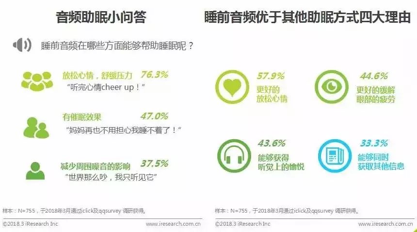 如果你也被睡眠方面的问题所困扰,好久都没睡过一个好觉了,或者,你还想详细了解助眠神器的使用指南,还请戳阅读原文,移步阅读艾瑞咨询与蜻蜓FM共同发布的《2018年中国睡前音频收听场景研究报告》。