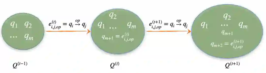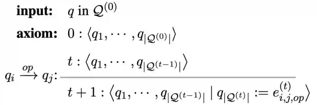 从正式的演绎推理系统角度,我们可以用上图表示状态的变化 (和 Dependency Parsing 中的 transition-based system 类似),从 t 到 t+1 状态的变化主要是增加了新的表达式 ,并且这个新的表达式会成为新的候选数字加入到下一个状态当中。