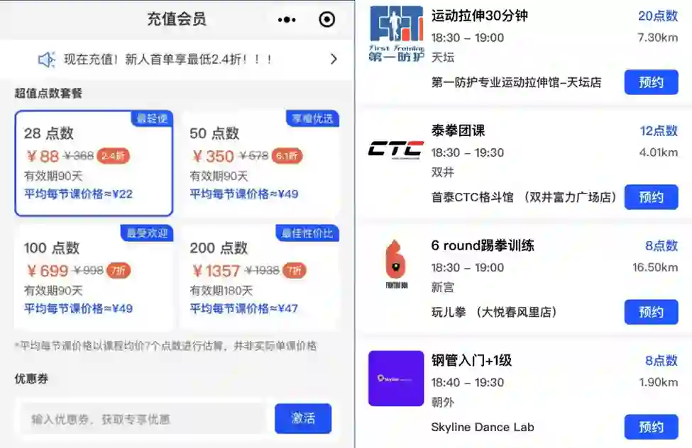 预判了这种趋势,在单次付费的基础上,ClassPass衍生出了点数制——一种根据课程项目的动态调价的制度。具体来说,消费者预定一节课,先要在平台付出相应的点数,平台再将点数折算成具体金额给到健身房,“汇率”根据实时情况调整。