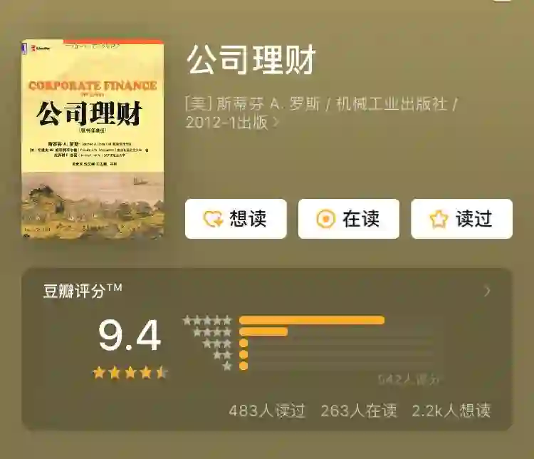 推荐语:套利定价理论创立者、现代金融经济学家、麻省理工学院罗斯教授封存于世间绝版的“corporate finance”金矿。
