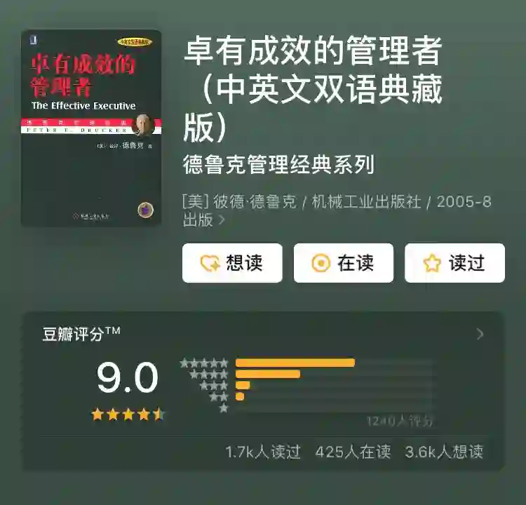 推荐语:知识工作者必须卓有成效 卓有成效是可以学会的。《卓有成效的管理者》告诉我们: