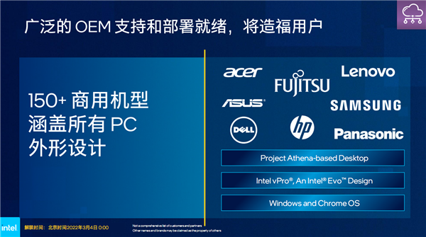 目前英特尔的合作伙伴们已经推出了超过 150 余款的商用机型的设计,包括华硕、宏碁、戴尔、惠普、联想等耳熟能详的企业。同时英特尔也打造了全新的 vPro 标识用于用户的识别。