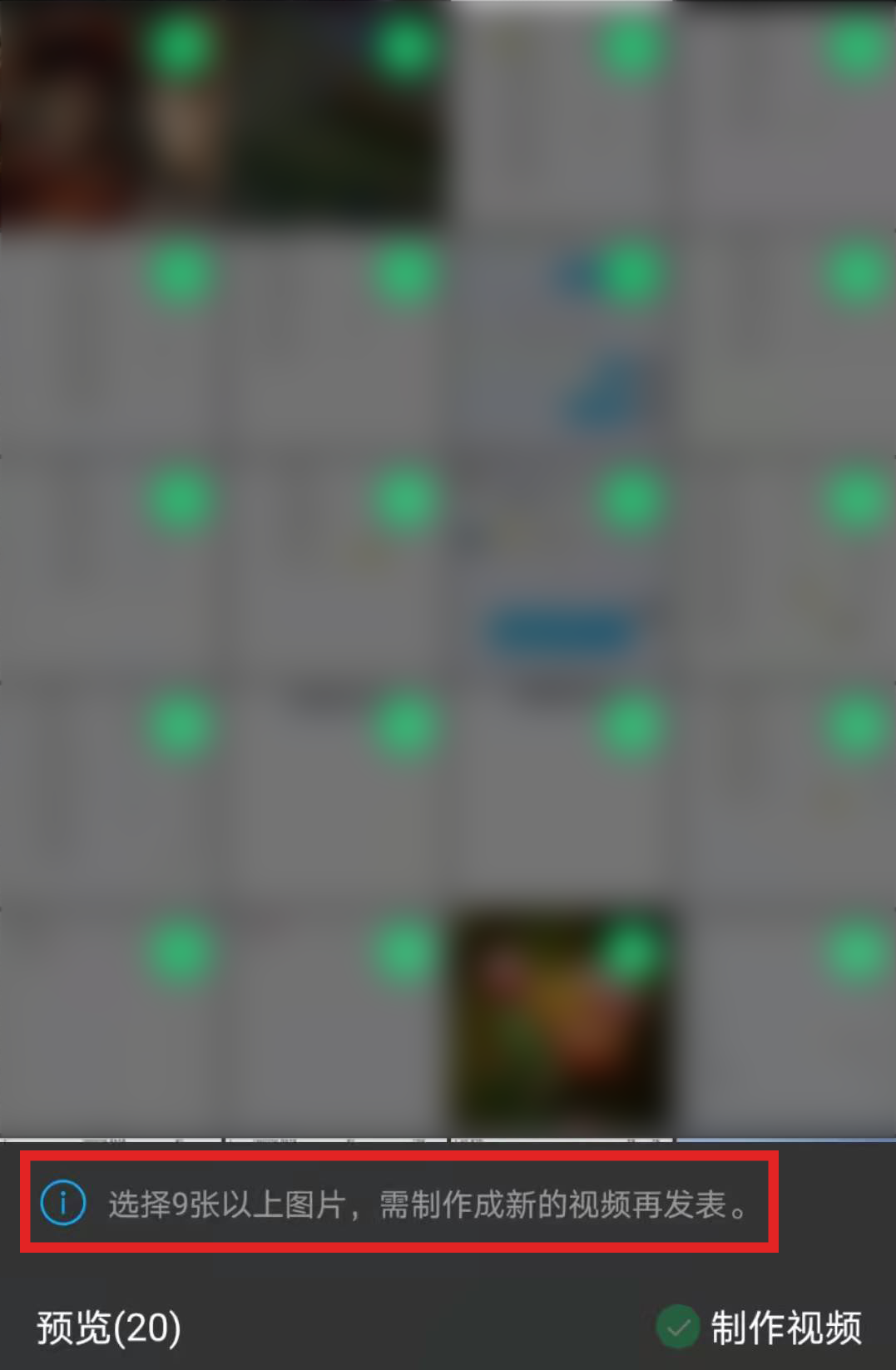 支持朋友圈发送 20 张图片:用户在朋友圈发送图片时,可连续选择 20 张。但是超过 9 张之后,微信会自动将照片生成视频形式,用户可以设置背景音乐及模板。