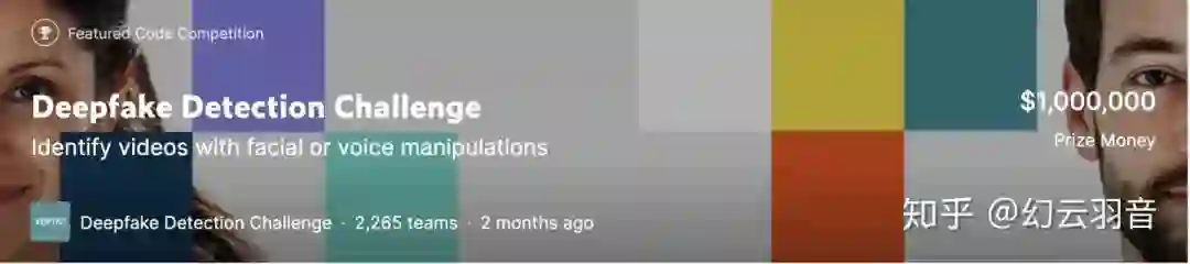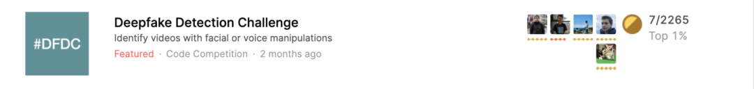 这就是前一段时间在 Kaggle 社区话题火得不行的 DeepFake 比赛。比赛任务是自动识别一段视频中的人脸是真实的,还是被AI替换过的。虽然数据量极大,比赛门槛较高,但奖金数额巨大,因此仍然吸引了非常多的参加者。