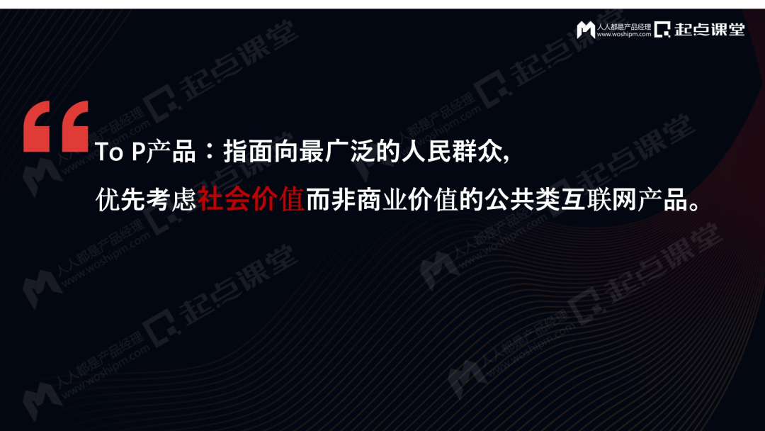 而To P 是指面向广泛的人民群众提供的产品。这个方向上的产品,本质上提供的是一种社会价值。