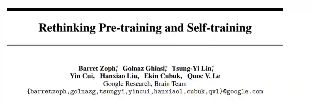 近期,谷歌大脑的研究团队对这个概念进行了扩展,在新论文《Rethinking Pre-training and Self-training》中,不仅讨论了预训练,还研究了自训练,比较了在同一组任务当中自训练与监督预训练、自监督预训练之间的差异。