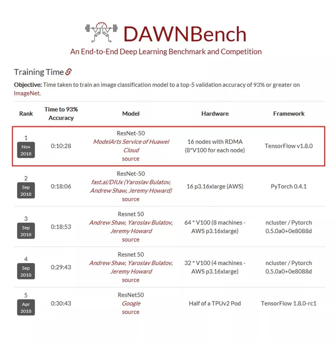 斯坦福大学DAWNBenchmark网页链接:https://dawn.cs.stanford.edu/benchmark/