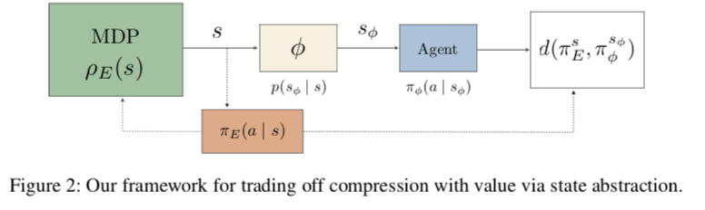 The goal of this work is to understand the role of information-theoretic compression in state abstraction for sequential decision making. We draw a parallel betweenstate abstraction as used in reinforcement learning and com- pression as understood in information theory. We build on the seminal work of Shannon (1948), Blahut (1972), Ari- moto (1972) and Tishby, Pereira, and Bialek (1999), and draw inspiration from related work on understanding the re- lationship between abstraction and compression (Botvinick et al. 2015; Solway et al. 2014). While the perspective we introduce is intended to be general, we focus our study in two ways. First, we investigate only state abstraction, de- ferring discussion of temporal (Sutton, Precup, and Singh 1999), action (Hauskrecht et al. 1998), and hierarchical ab- straction (Dayan and Hinton 1993; Dietterich 2000a) to fu- ture work. Second, we address the learning problem when a demonstrator is available, as in Apprenticeship Learn- ing (Atkeson and Schaal 1997; Abbeel and Ng 2004; Argall et al. 2009), which simplifies aspects of our model.