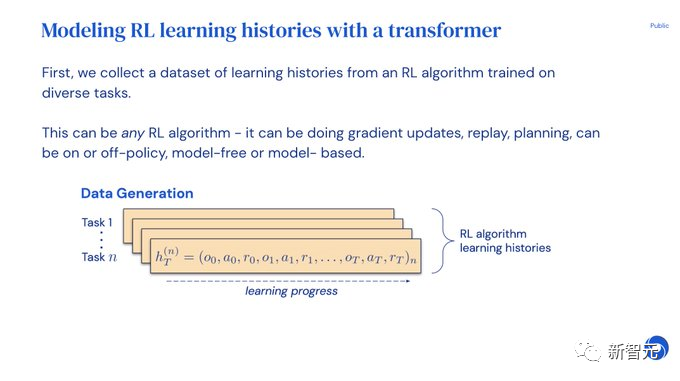 1、通过保存一个RL算法在许多单独任务上的训练历史,生成一个大型的多任务数据集;