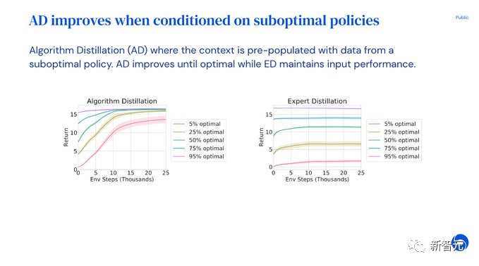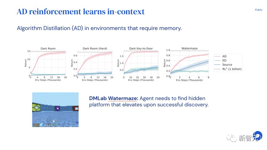 算法蒸馏的实验表明,Transformer可以通过试错自主改善模型,并且不用更新权重,无需提示、也无需微调。单个Transformer可以收集自己的数据,并在新任务上将奖励最大化。
