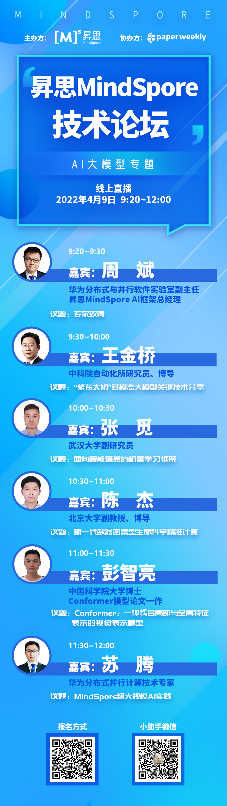 昇思MindSpore社区携手知名媒体PaperWeekly发起首场【昇思MindSpore技术论坛·AI大模型专题】线上交流会。