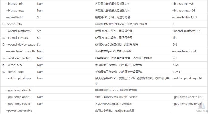 HashCat本身考虑到系统资源的分配,默认参数下并没有最大化的来使用硬件资源。如果我们想要让破解速度最大化,就需要对一些参数进行配置。下面是常用的一些参数说明: