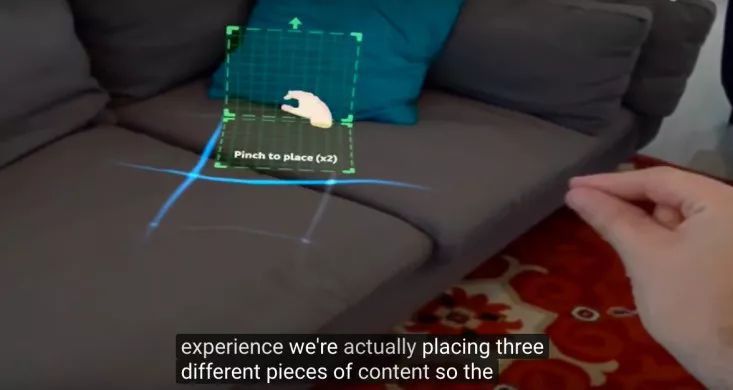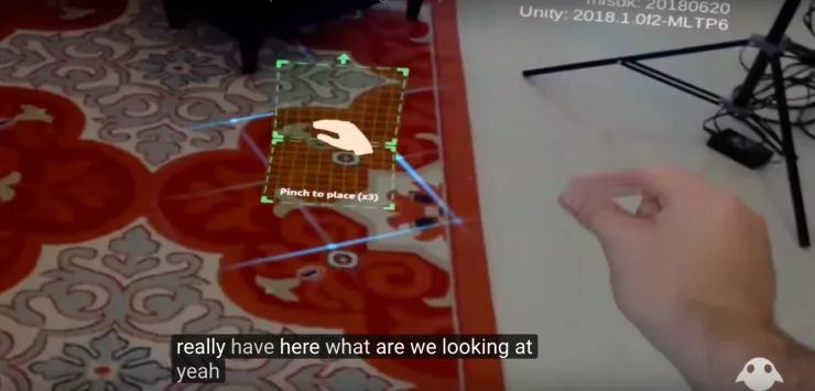 Bryant也展示了手势识别,其手势和HoloLens唯一的手势很像,捏住拇指和食指表示点击。据说Magic Leap的手势识别SDK还可以跟踪单个手指和关节,拳头和其他全手势,还包括眼动追踪和头部追踪