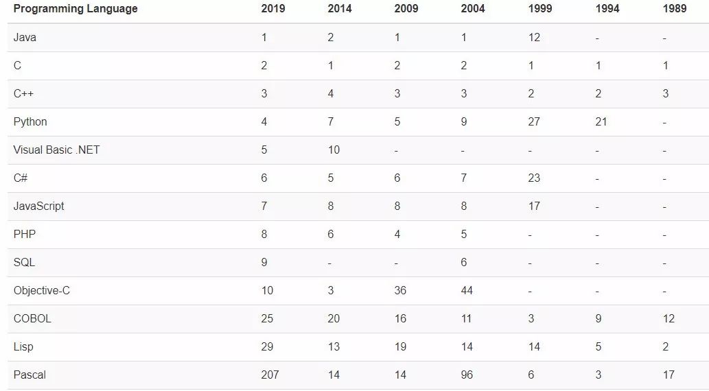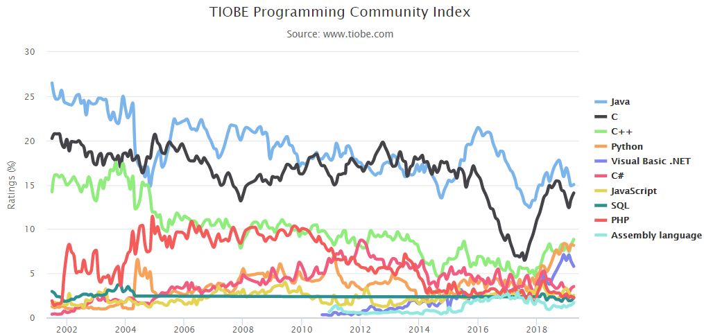 《2019年3月编程语言排行榜:C语言、Python、C++都在增长》