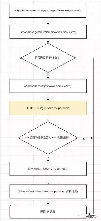 这个偷天换日的操作之后,HttpsUrlConnection 等 Java 层网络请求在进行 DNS 解析时就会是这样一个流程: