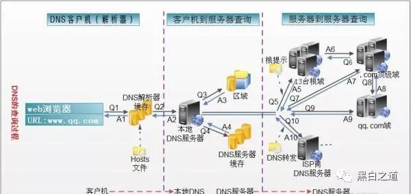 虽然只需要返回一个IP地址,但是DNS的查询过程非常复杂,分成多个步骤。