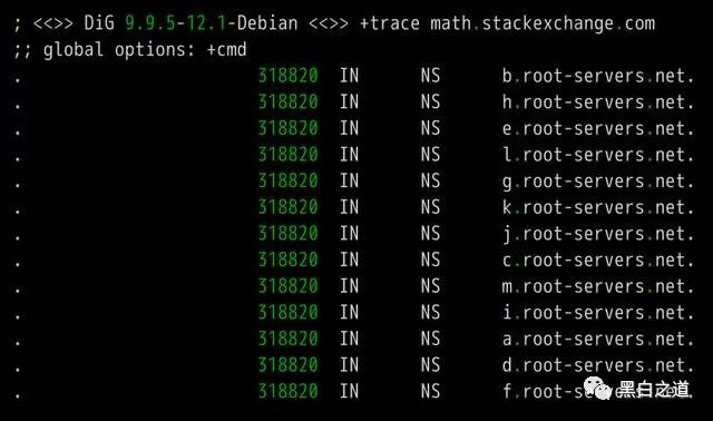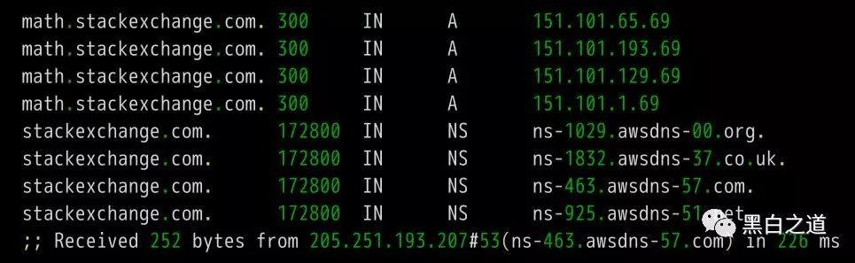 上面命令只返回math.stackexchange.com对应的4个IP地址(即A记录)。