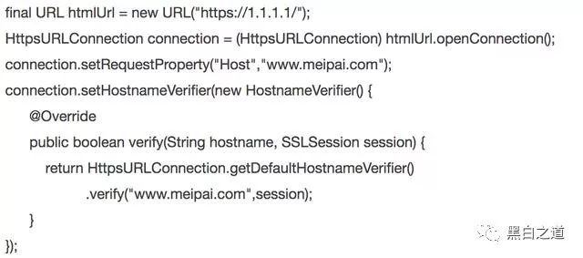解决 SSL/TLS 握手中域名校验问题的方法在于我们重新配置 HostnameVerifier, 让请求库用实际的域名去做域名校验,