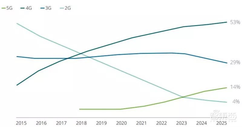 4G 于 2009 年末 2010 年初推出之后仅有小部分运营商在有限的部分地区提供 4G 服务。 18 虽然在推出后的10 年间 4G 网络的布局范围越来越广, 但直到 2019 年4G 才成为全球用户最多的无线联网技术。 全球移动通信系统联盟(GSMA) 的报告显示, 全球范围内的 4G网络用户要到 2023 年才能超过网络用户总数的 50%,距离 4G 网络的最初启用已过去 14 年。这意味着到2025 年, 5G 可能仍是一种相对小众的技术。 该年度的 5G 用户人数有望达到 12 亿人次, 但也仅占全球非物联网移动网络用户总数的 14%。 与此同时, 不同国家的 5G 网络应用情况也存在巨大差异: 到 2025 年,美国将有 49% 的用户使用 5G 网络, 日本、 欧洲、 中国的这一比例分别为 45%、 31%和 25%, 而拉丁美洲、中东和非洲的这一百分比仅为个位数。十年以后,供应商们可能仍在推广 5G。