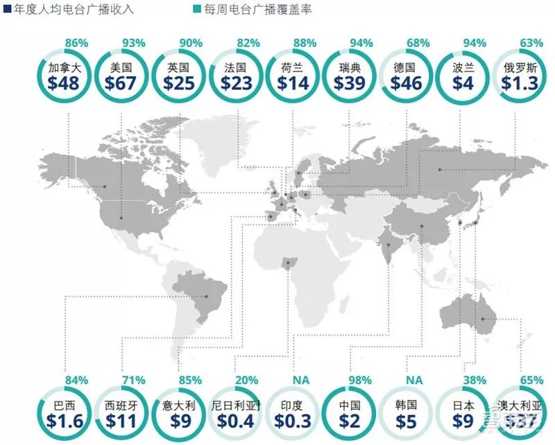 ▲2017年按国家划分的年度人均电台广播收入(美元)