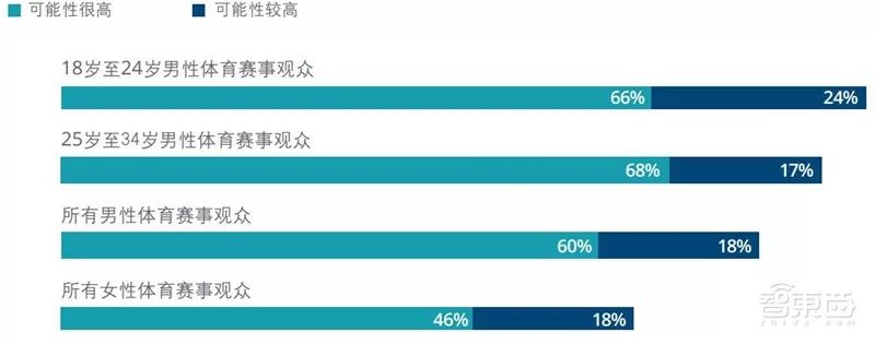若一个人对某场赛事投注, 我们可能认为他 / 她更有可能收看该场赛事。 调查结果也证实了这一看法。 下图表明, 超过一半的美国电视体育节目观众表示, 如果他们对某场比赛投注, 那么观看该比赛的可能性会大幅增加, 另有 18% 的人表示, 这种可能性会略微增加。 18 岁至 34 岁男性中,85% 至 90% 的人认为如果自己投注, 观看比赛的几率至少会有所增加, 超过三分之二的人表示该种可能性会大幅增加。 同样, 对该问题的回应存在性别差异。 相比男性受访者,更少有女性表示她们观看某场比赛的几率会由于参与博彩而升高。