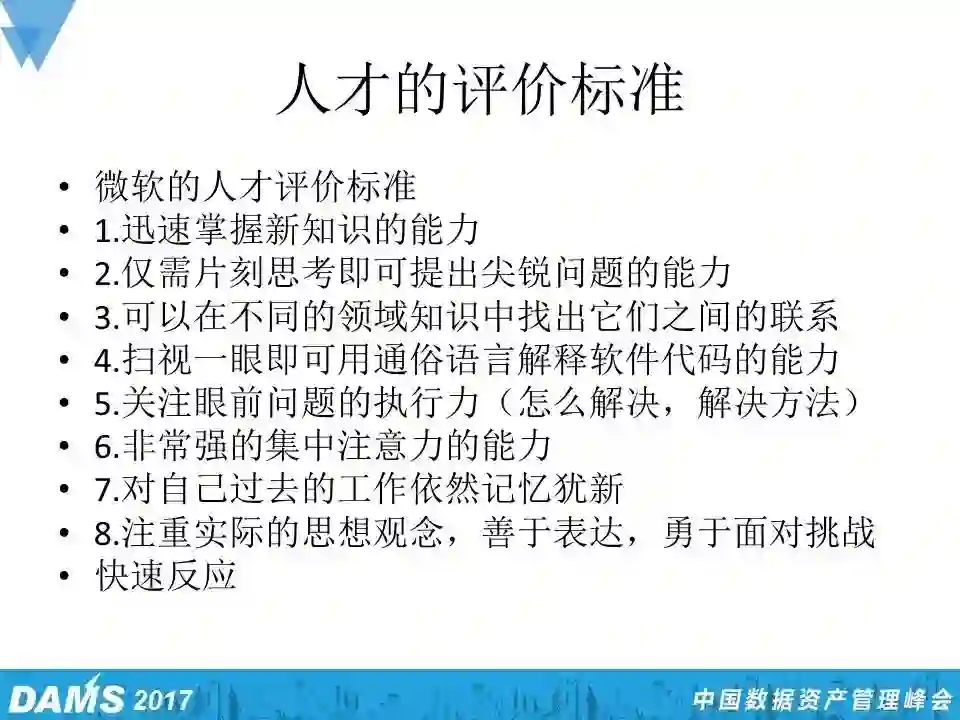我看到微软评价人才的标准,我觉得讲得挺透彻的,大体就是学习归纳的能力,还有化繁为简的能力。