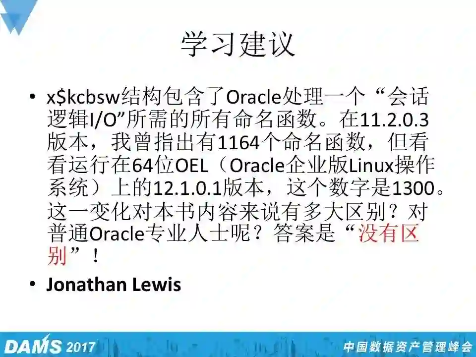 对于学习,我引用Oracle行业非常有名的专家Jonathan Lewis说的一段话,收录在《Oracle的核心技术》里面,有一段话我看了以后非常受启发。这也是我给大家学习的一个基本态度: