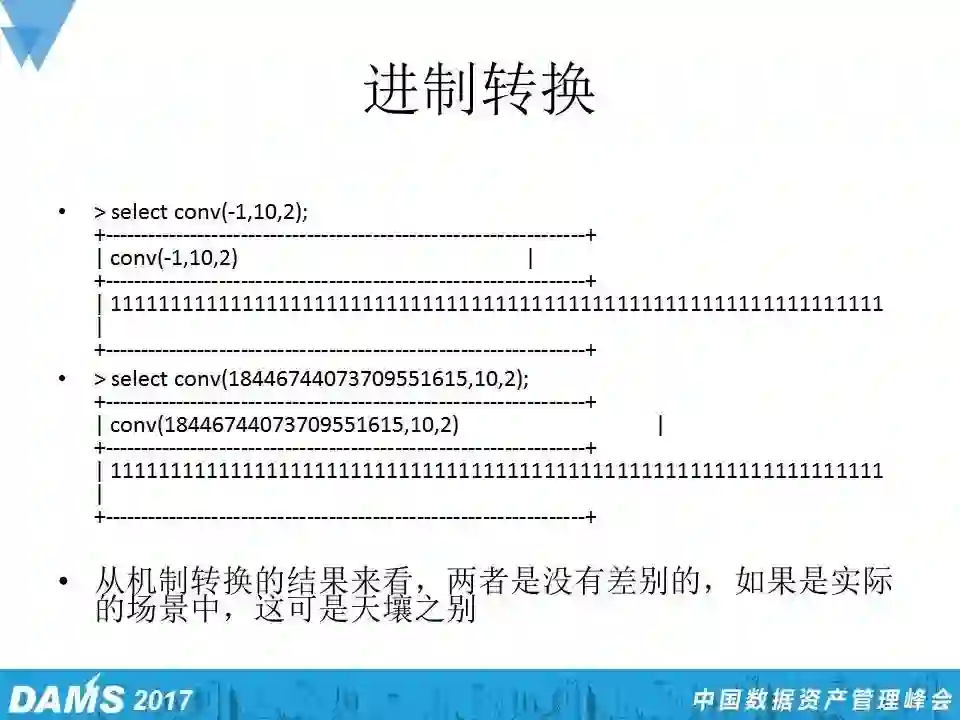 其实数值类型还有更多对于这样的情况binlog它是怎么去展现的,是有符号还是无符号的,你把这个搞明白,数据处理的时候就有思路了,我们来看看进制转换。