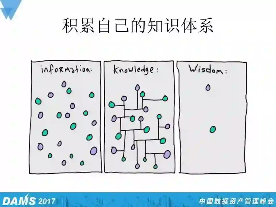 这个是我比较有感触的一个图,你碰到日常问题的时候有很多的一些总结,最开始碰到的比较零散的东西,然后你如果不断去总结去梳理形成一个知识体系,对某些方面有更多的深入就会变成财富。