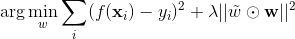 为了与KCF进行对比,这里使用了与SRDCF原文不同的符号表示。式中的 与 w 意义并不相同,它是对 w 施加的空间正则化权重。也就是说,某些位置(主要是边界)的滤波器系数会受到惩罚。