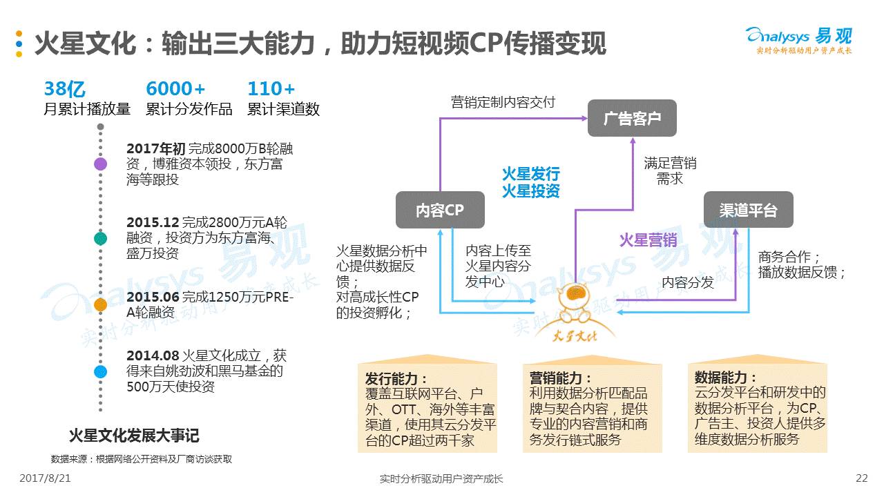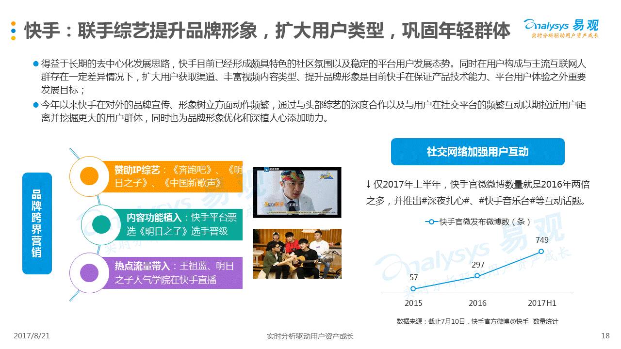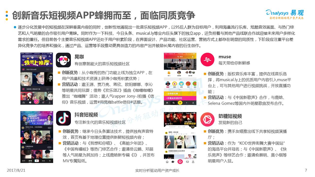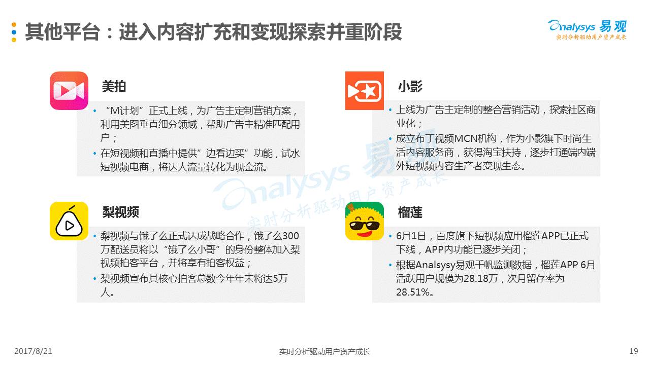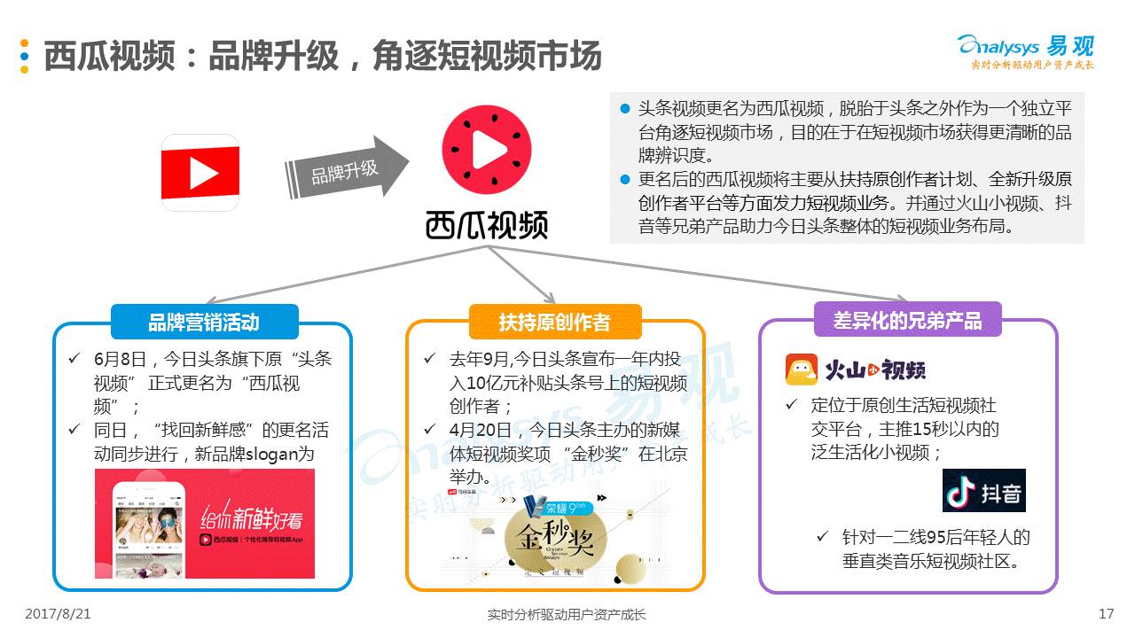 进入2017年以来,短视频持续成为市场各方关注的中心,行业规模持续攀升。在2017年第2季度,短视频领域在政策监管、企业布局、产业环节、产品创新、广告营销等多个层面都涌现出新的发展热点,本分析从行业现状热点出发,分析短视频市场主要环节和典型厂商,并对下阶段市场发展趋势作出展望。