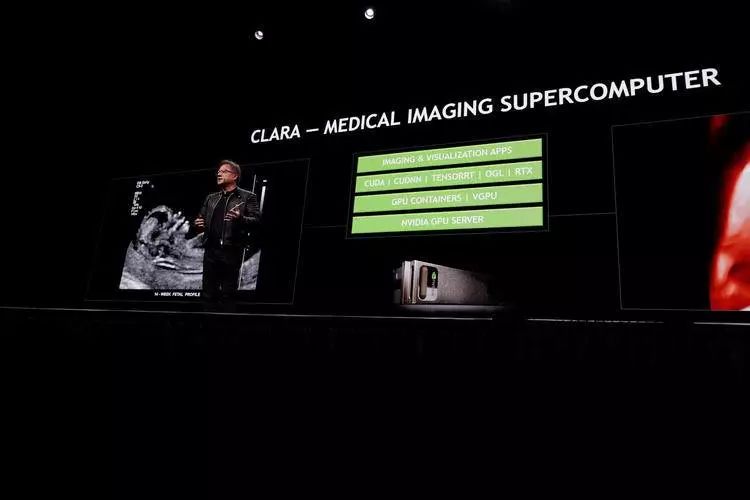 老黄推出了第一款专用于医疗图像处理的超级电脑 Clara,它能够支持 CUDA、CUDNN、TensorRT、OGL 以及刚刚提到的 RTX 技术。