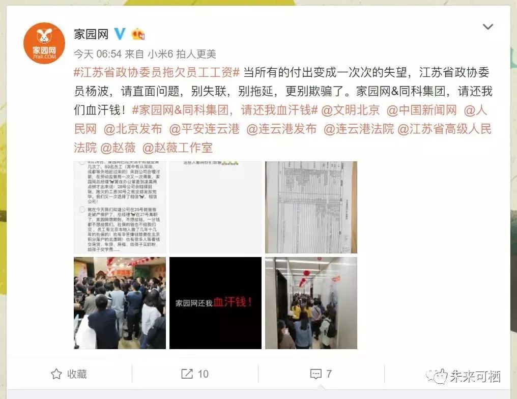 “大概核算过,家园网欠700多名员工5000多万工资。十一前大概有200多名员工在跟连云港投资方在谈,后续的补偿是由同科投资集团来承担,谈判的结果是签了欠薪证明,签完离职协议后发8月工资, 10月20号是发9 月工资,12月30号之前把欠的绩效和赔偿给我们”,一位离职员工表示。