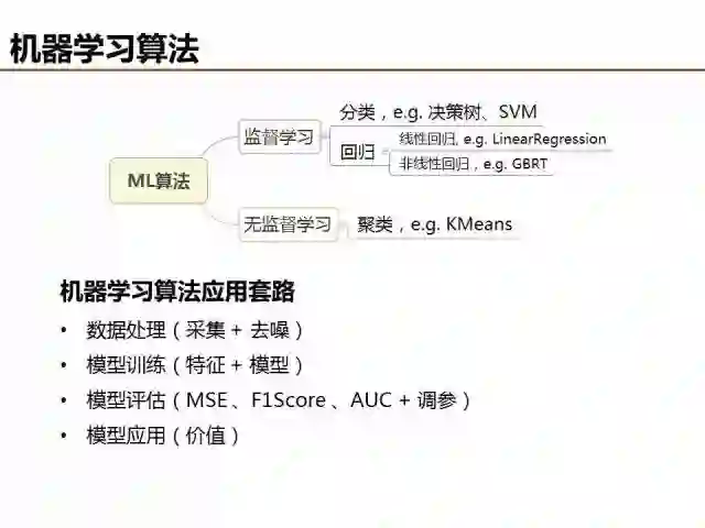 特征设计依赖于对业务场景的理解,可分为连续特征、离散特征和组合高阶特征。本篇重点是机器学习算法的介绍,可以分为监督学习和无监督学习两大类。