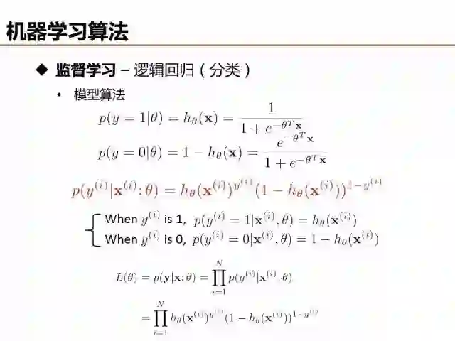 逻辑回归模型参数可以通过最大似然求解,首先定义目标函数L(theta),然后log处理将目标函数的乘法逻辑转化为求和逻辑(最大化似然概率 -> 最小化损失函数),最后采用梯度下降求解。