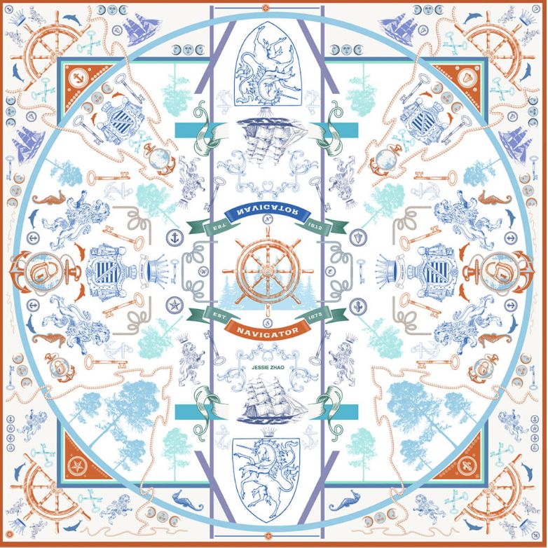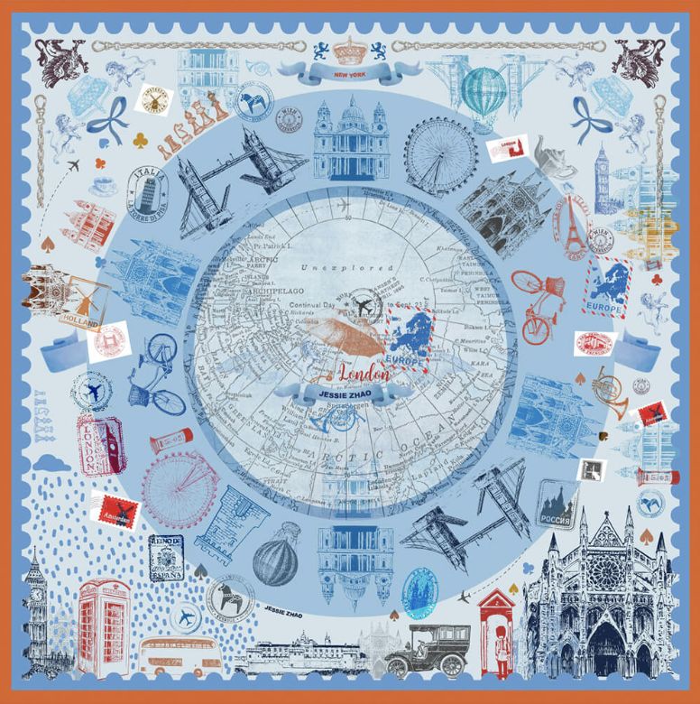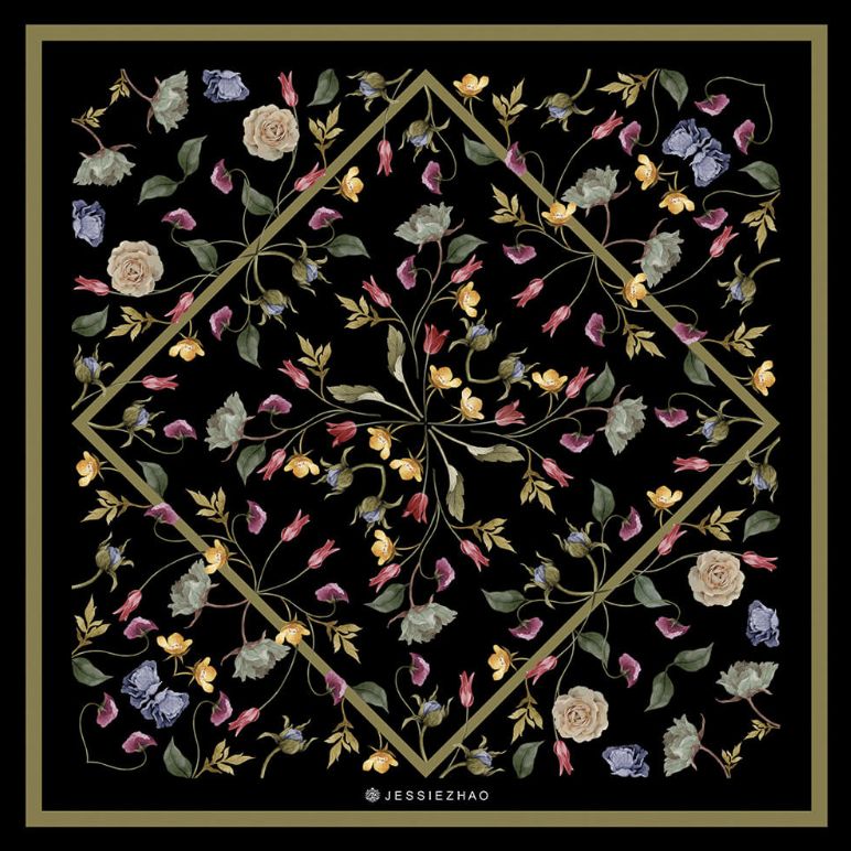 华裔女设计师Jessie Zhao擅长在约一米见方的丝巾上创造魔幻世界。