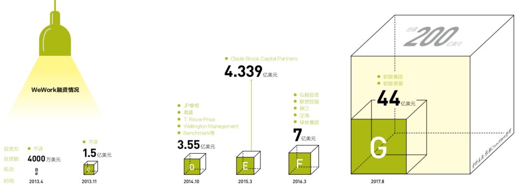 2018年4月,WeWork宣布与中国竞争对手裸心社合并;7月,中国WeWork宣布B轮5亿美元融资,投资方为挚信资本、淡马锡控股、软银集团、软银愿景基金及弘毅投资,最新投后估值50亿美元。