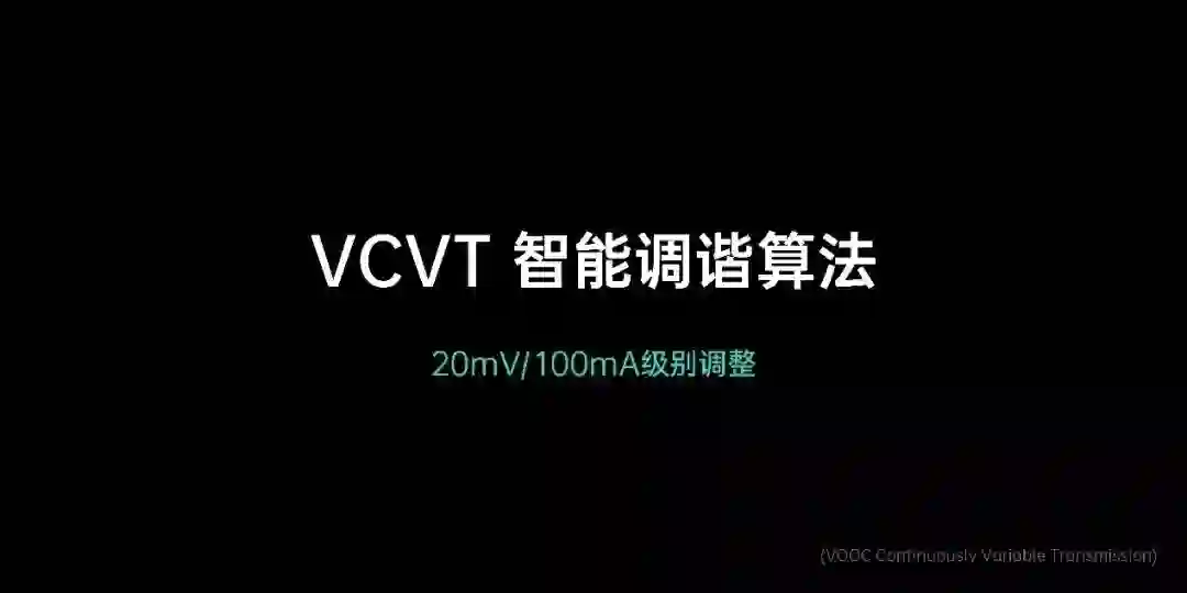 目前 OPPO 采用的是 VCVT 智能调谐算法,以 100mA或20mV 为一档智能调节电压电流。就是说,充电器和电池之间的电流和电压,可以按照这个单位,动态进行增加或减少。主要的目的,就是为电池提供最佳的充电功率,提高充电效率。