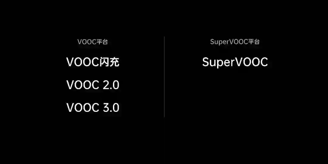 现在 OPPO 的闪充平台经过 5 年的发展,目前已经分为 VOOC 和 SUPERVOOC 两个平台,SUPERVOOC 将来会应用在 OPPO 中高端机型上, VOOC 则会应用在一些入门机型上。