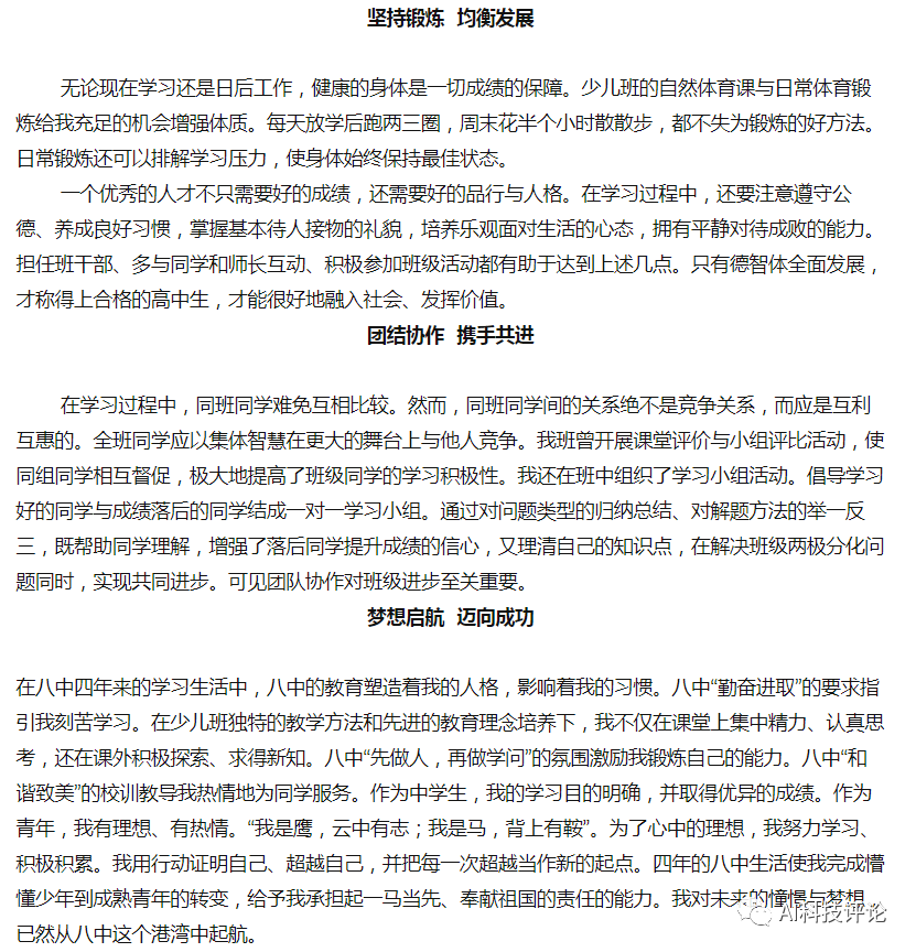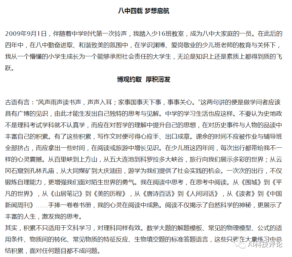 在八中的经历对杨幻睿来说是全方位的提升 ,知识、见识、学习方法、为人处事都是在八中这几年培养出来的。