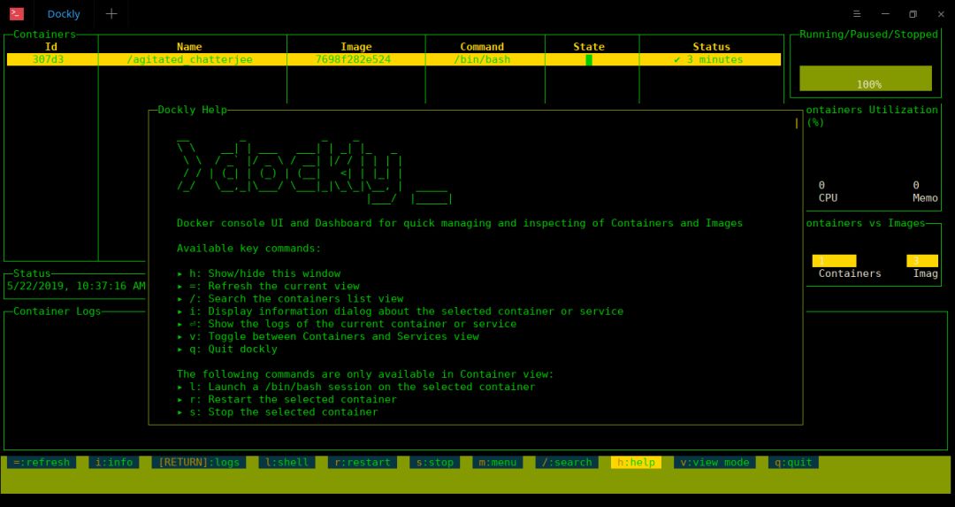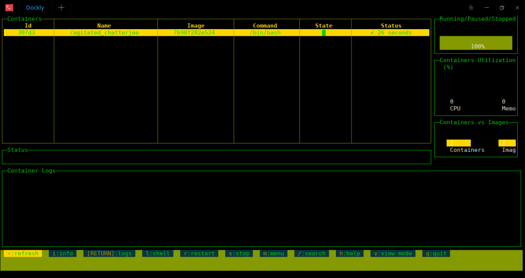 使用 Dockly 管理 Docker 容器非常简单!你所要做的就是打开终端并运行以下命令: