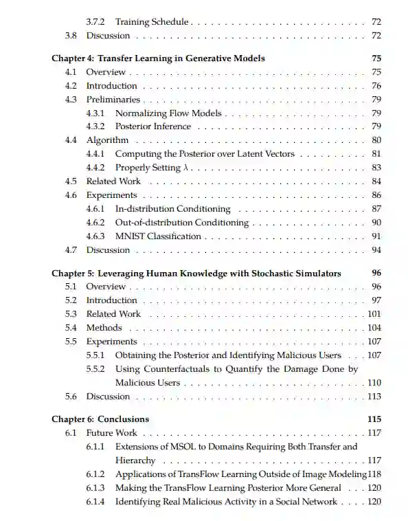 迁移学习技术是这些问题的潜在解决方案,它允许大型的、通用的模型经过一次训练,然后在各种情况下重用,只需要最少的计算来适应它们。本文探索了迁移学习的新算法和应用,包括分层强化学习、生成式建模和计算社会科学等领域。在分层强化学习领域内,本文提出一种算法,允许在选项之间迁移(即在不同的选项之间迁移)。例如,时间上抽象的动作),用于独立但相似的任务。在生成建模领域,我们提出了一种算法,可以在新的数据上重用现有的可逆生成模型,而不产生任何额外的训练成本。最后,在计算社会科学领域,本文表明,可以从人类设计的模型中迁移知识,以检测针对排名算法的恶意活动。