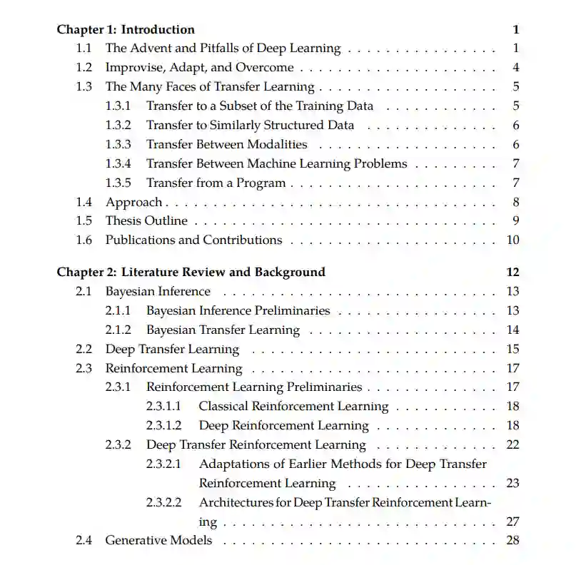 在这篇论文中提出的所有算法之间的共同线索是它们本质上是贝叶斯的。我们认为,贝叶斯范式自然适合于迁移学习应用,因为贝叶斯先验可以作为适应性强的通用模型,通过推理过程可以转换为特定任务的后验。