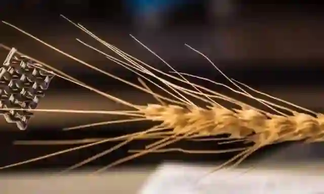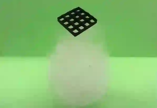 ▲ 3D打印石墨烯气凝胶的正方形样品非常轻便,可以挂在麦芒上而不会弯曲。该材料 被吉尼斯世界纪录公司宣布为世界上最轻的3D打印材料。