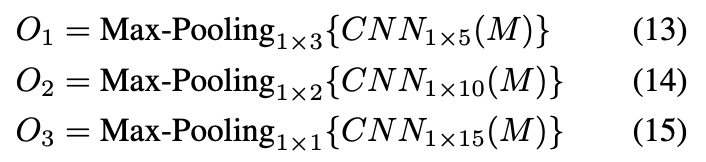 我们一共定义了三组卷积神经网络和对应的池化操作,分别用于抽取不同粒度的匹配特征。具体公式如图: