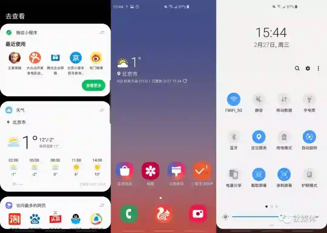 三星ONE UI与国内大多厂商相同,加入了负一屏设计,但由于国内对Google的限制,有不少功能进行了阉割。但我们也能看到很多专用的功能,例如微信小程序等。