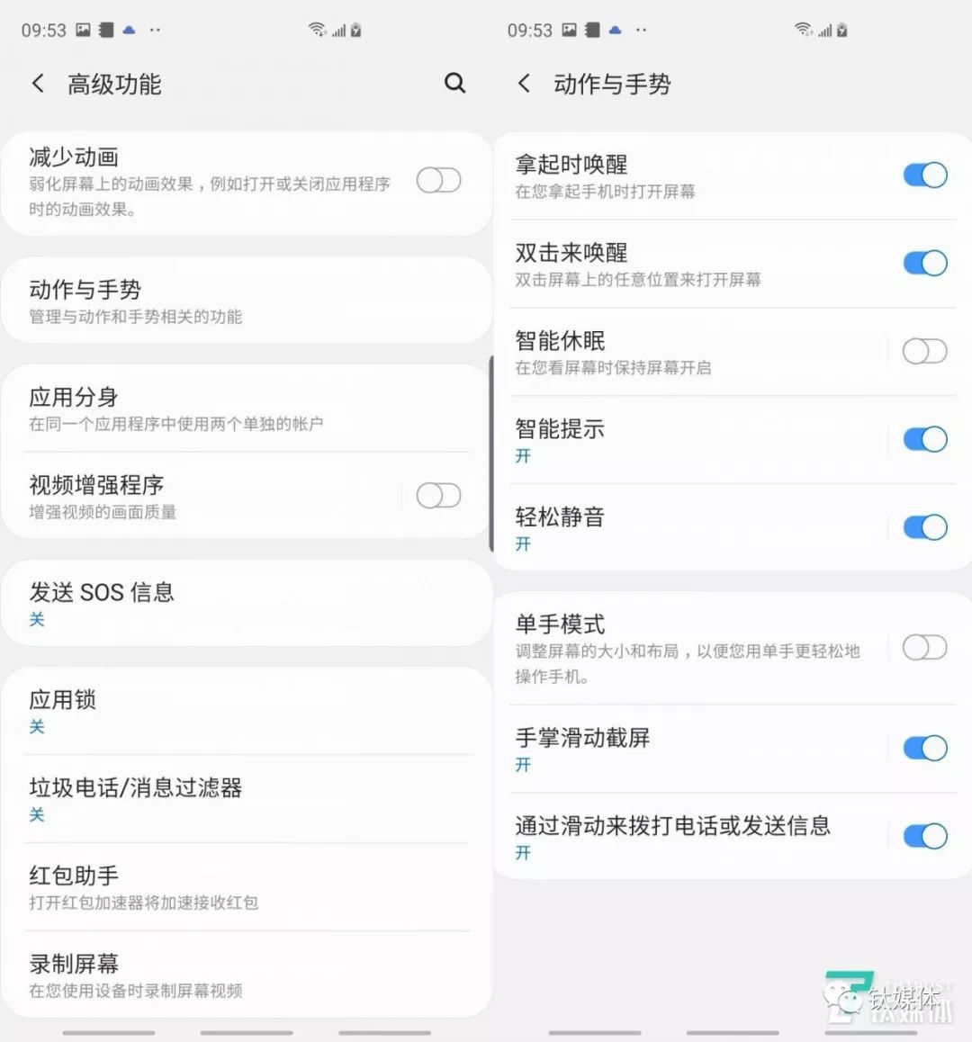 Android 9的好处一部分在于底层系统的简洁性提高,各种功能的调用可以更快。同时,其他厂商对于其定制化的调整也就更多,在ONE UI的通用中针对动作手势等操作加入了不少新选项。