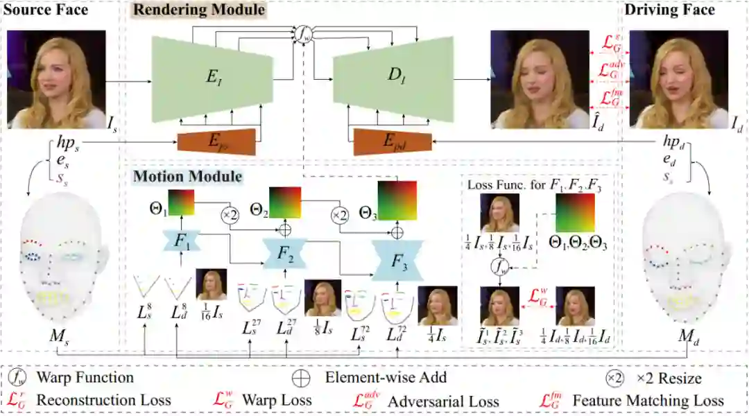 分别在台式机 GPU 和手机端 CPU 上支持以实时帧率生成 1440x1440 和 256×256 分辨率的人脸重演图像