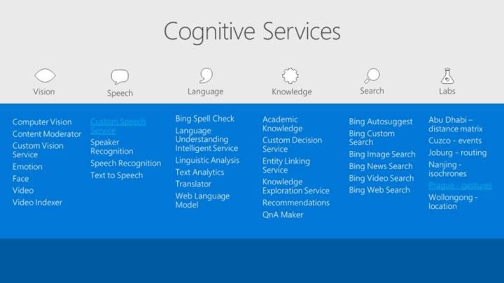 微软把三十多种不同的人工智能服务集合成 Cognitive Service 部署在云上。Cognitive Service 最大的特点是有定制的能力,可以根据用户在使用它时的不同要求,定制语音识别、图像识别功能。我们把工具交到开发者手中,只要有足够多的数据,开发者就可以根据自己的需求进行定制。这也是一种迁移学习。