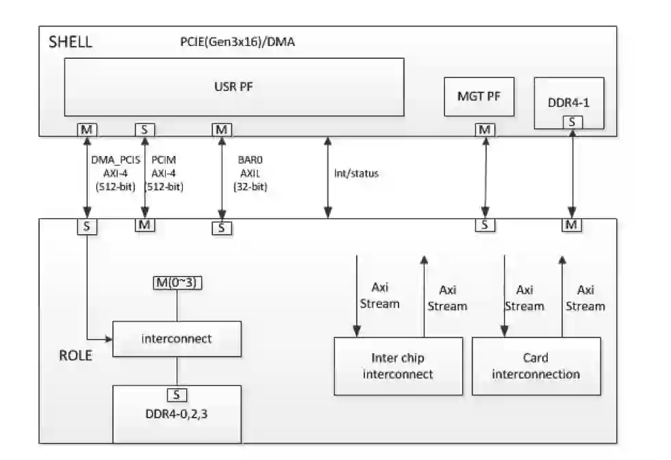 Shell是FPGA的静态区域,内部包含用户PCIe、管理PCIEe、板卡管理系统和一个DDR访问通道。为了提高板卡的安全和稳定性,用户无权修改SHELL区域。